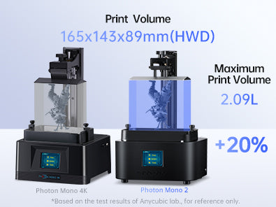 Larger Print Volume Empowers Your CreativityPhoton Mono 2 3d printer offers a 165x89x143mm (HWD) printing size and 2.09L maximum printing volume with high accuracy, making it a precise choice for creators.