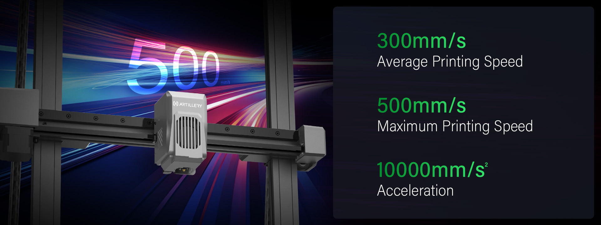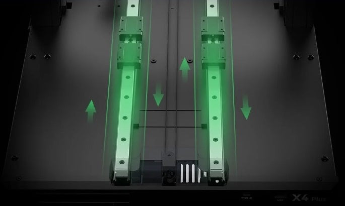 Having carriage slides containing ball bearings on the X and Y axis, this superior linear rail structure offers the Artillery SW-X4 Plus greater precision, better mounting, and smoother motion, ensuring an amazing quality of your final build under high-speed 3D printing.
