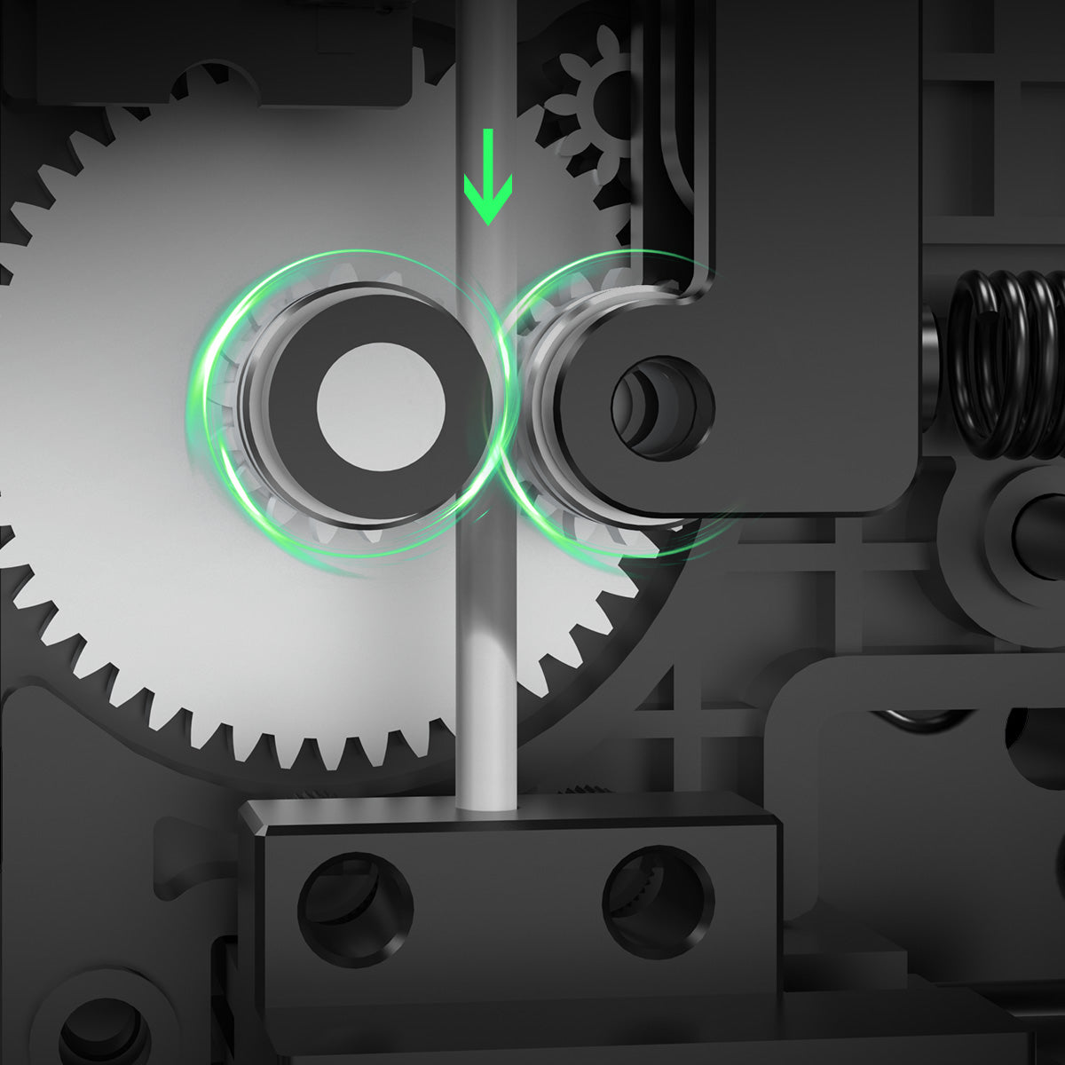 Artillery Self Developed all-metal direct drive extruder with dual gear set, provides the Sidewinder X4 PLUS with a higher drive ratio and a lighter motor, making extrusion more accurate and printing flexible materials easier.
