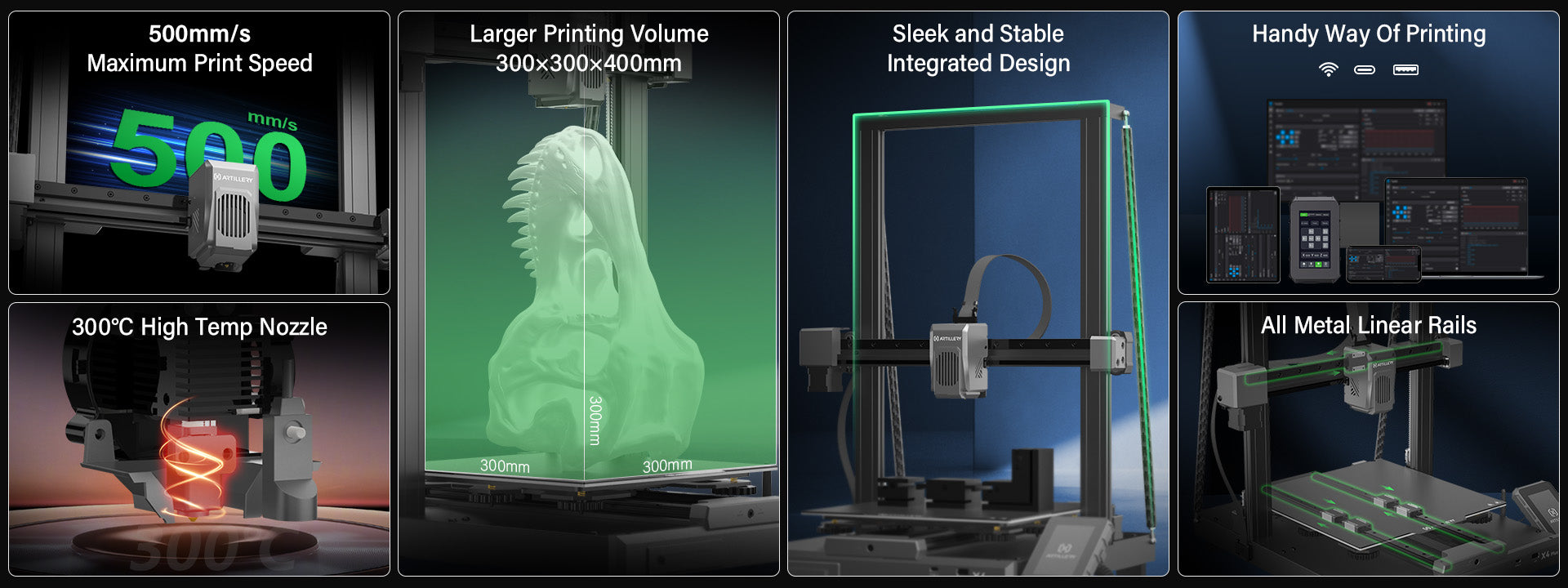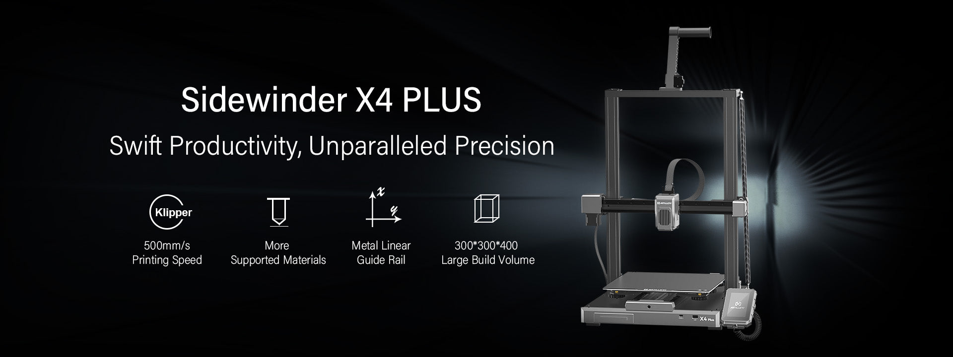 Imprimante 3D Artillery Sidewinder X4 Plus, volume d’impression 300*300*400mm, Advanced Klipper Firmware, Maximum 500mm/s printing speed