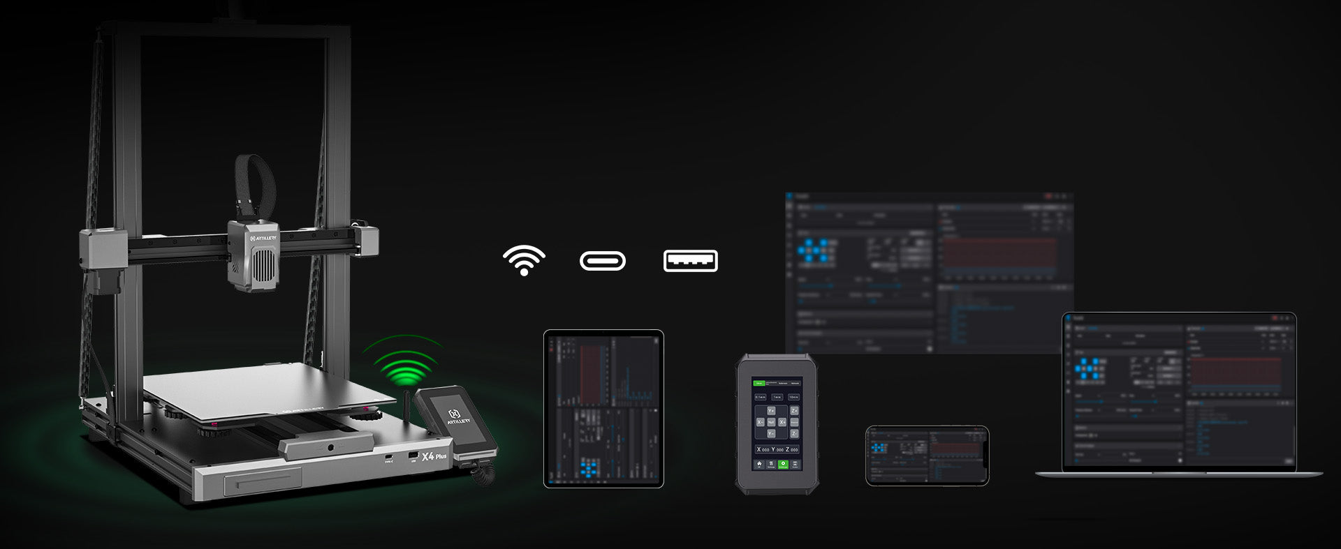 The SW-X4 PLUS can print via USB drive, or data-secure LAN. The embedded WIFI module allows for faster pairing and a more stable connection, making it a simple and reliable way of remote printing and monitoring your print farm.
