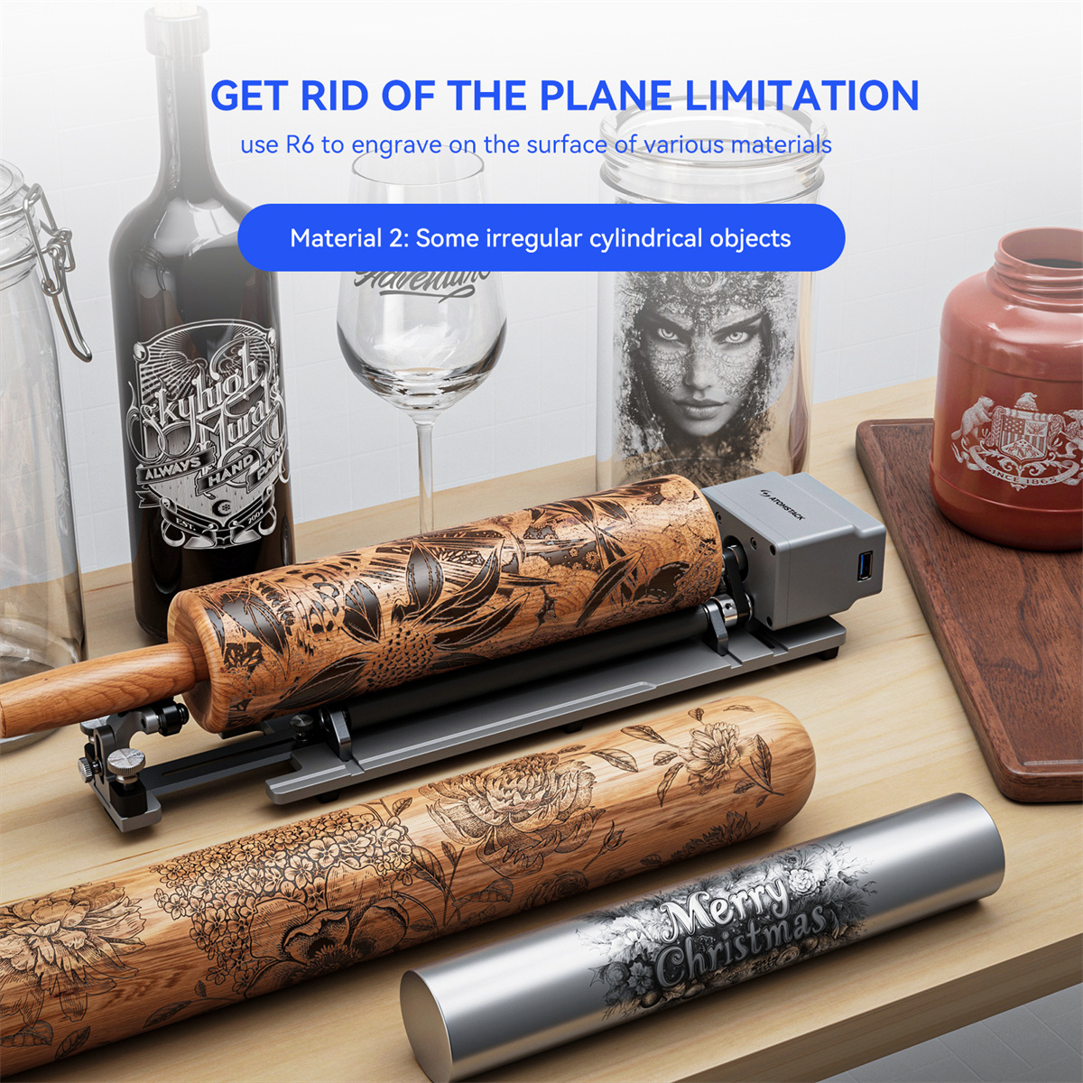 1. Expands the engraving machine’s application scope, breaking free from flat surfaces and enabling laser engraving on irregular objects.