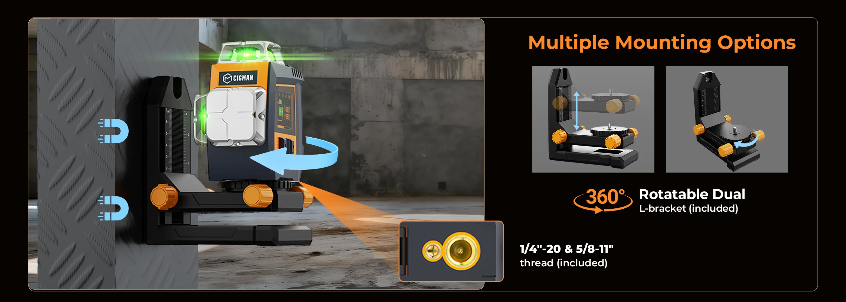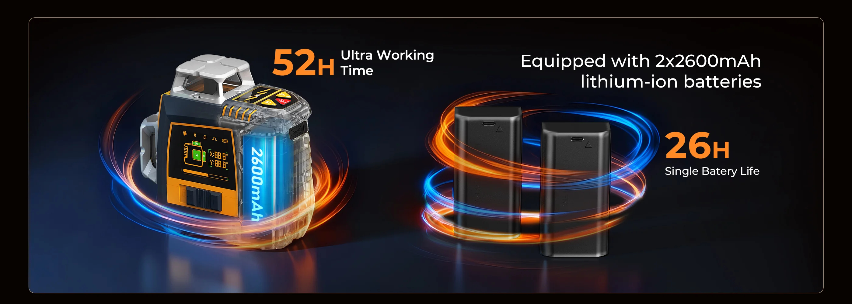 2. Haute visibilité couverture laser vert 3×360° : Trois puissantes lignes laser vertes à 360° offrent une couverture complète pour les sols, les murs et les plafonds. Associé à des batteries Li-ion haute capacité, il garantit une durée d’utilisation prolongée et une précision supérieure pour une utilisation continue en intérieur et en extérieur.