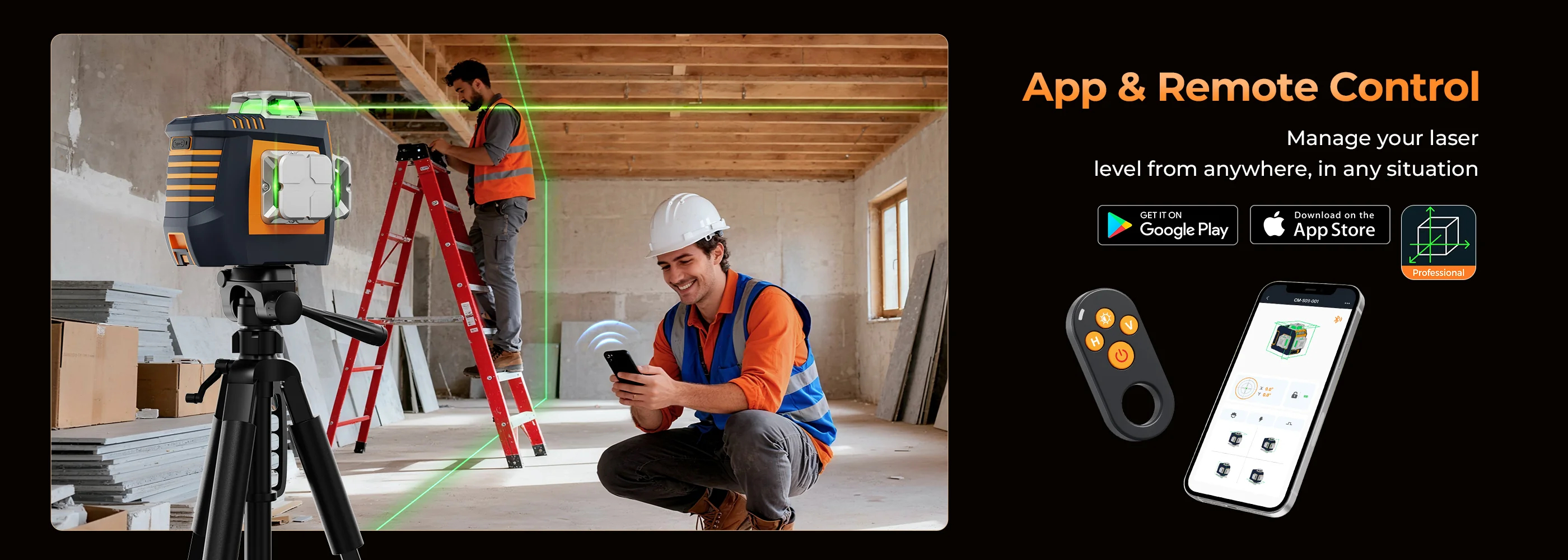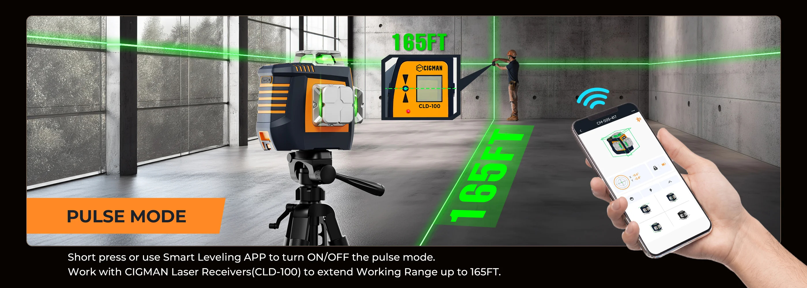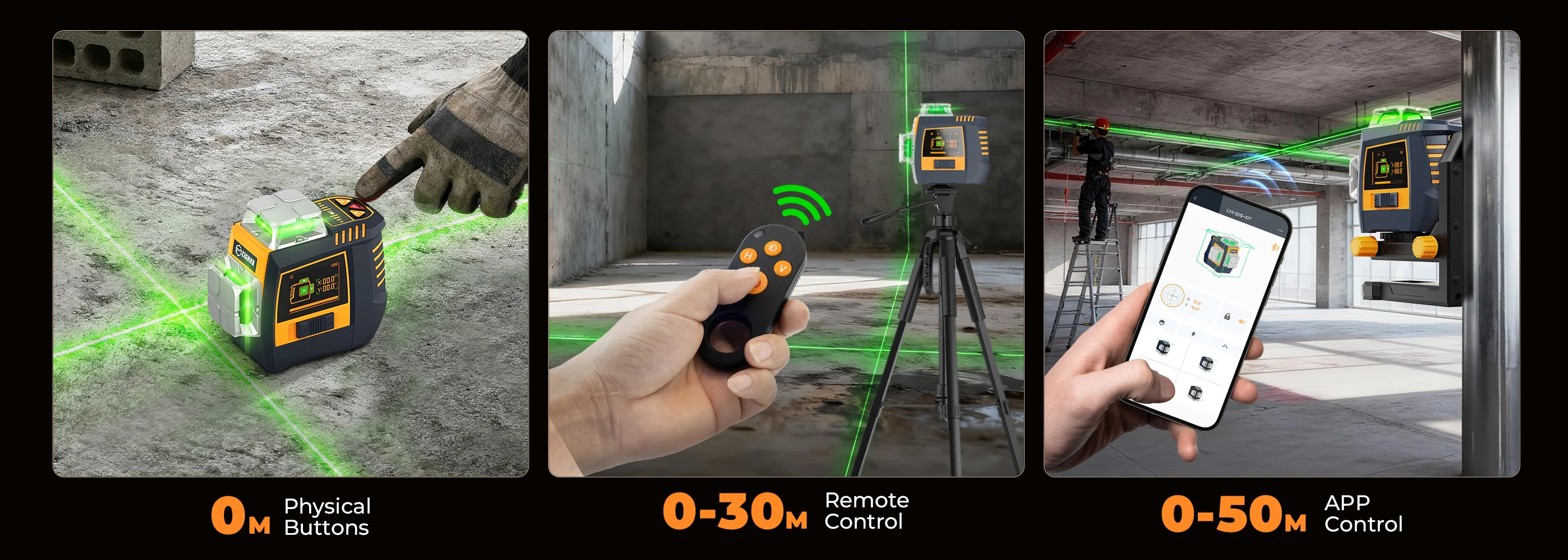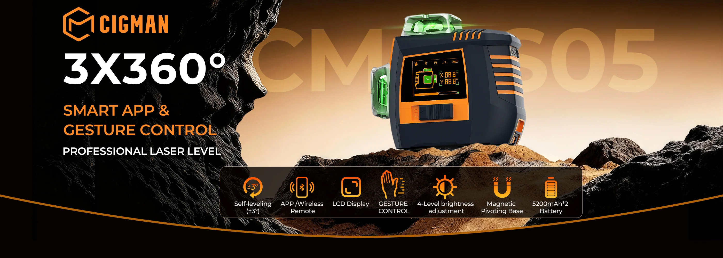 CIGMAN CM-S05 Contrôle Gestuel Niveau Laser 12 Lignes 3×360 Vert Auto-Nivelant Haute Précision APP Bluetooth Affichage Numérique à Distance – 12 lignes