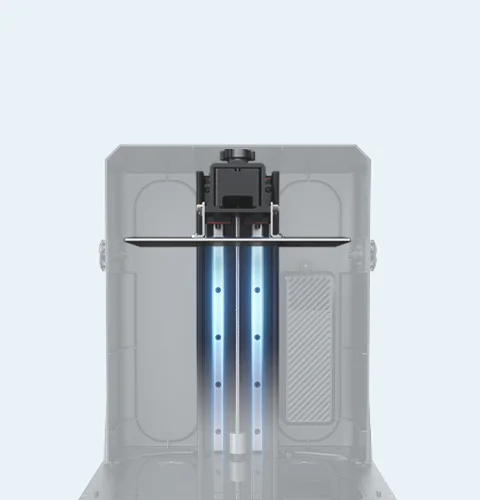The Z-axis of HALOT-MAGE features dual rigid linear rails and is driven up and down by a powerful motor. It reduces wobbling vastly and deals well with larger, heavier prints.