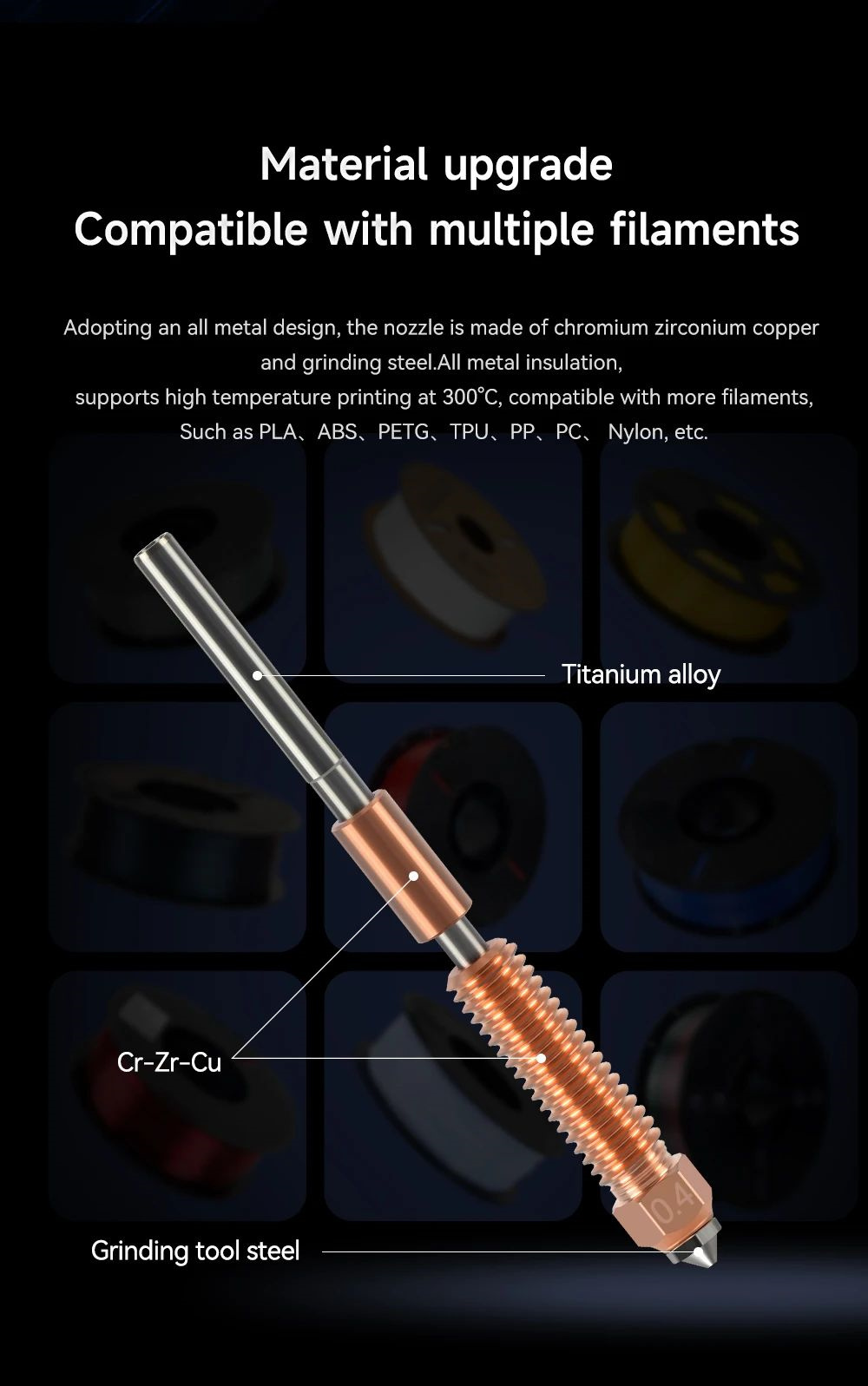 1. Résistance à haute température : Conçu pour fonctionner efficacement à des températures allant jusqu’à 300 °C, compatible avec divers filaments haute température.