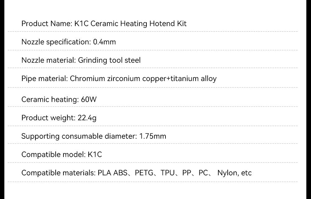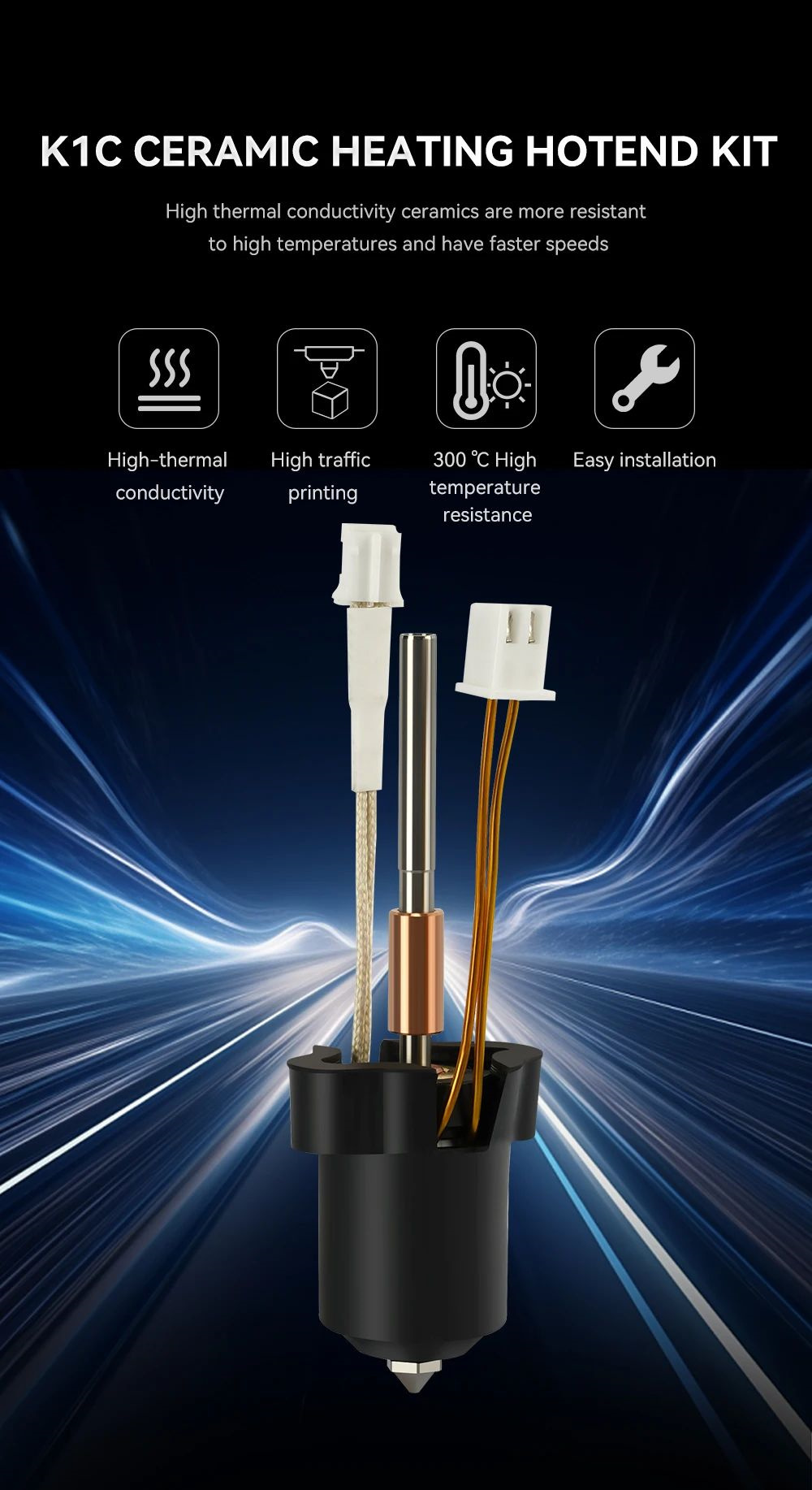pour Creality K1 K1C K1Max Hotend kit de bloc de chauffage en céramique pièces d’imprimante 3D kit de buse à changement rapide résistance à la chaleur du hotend – Noir