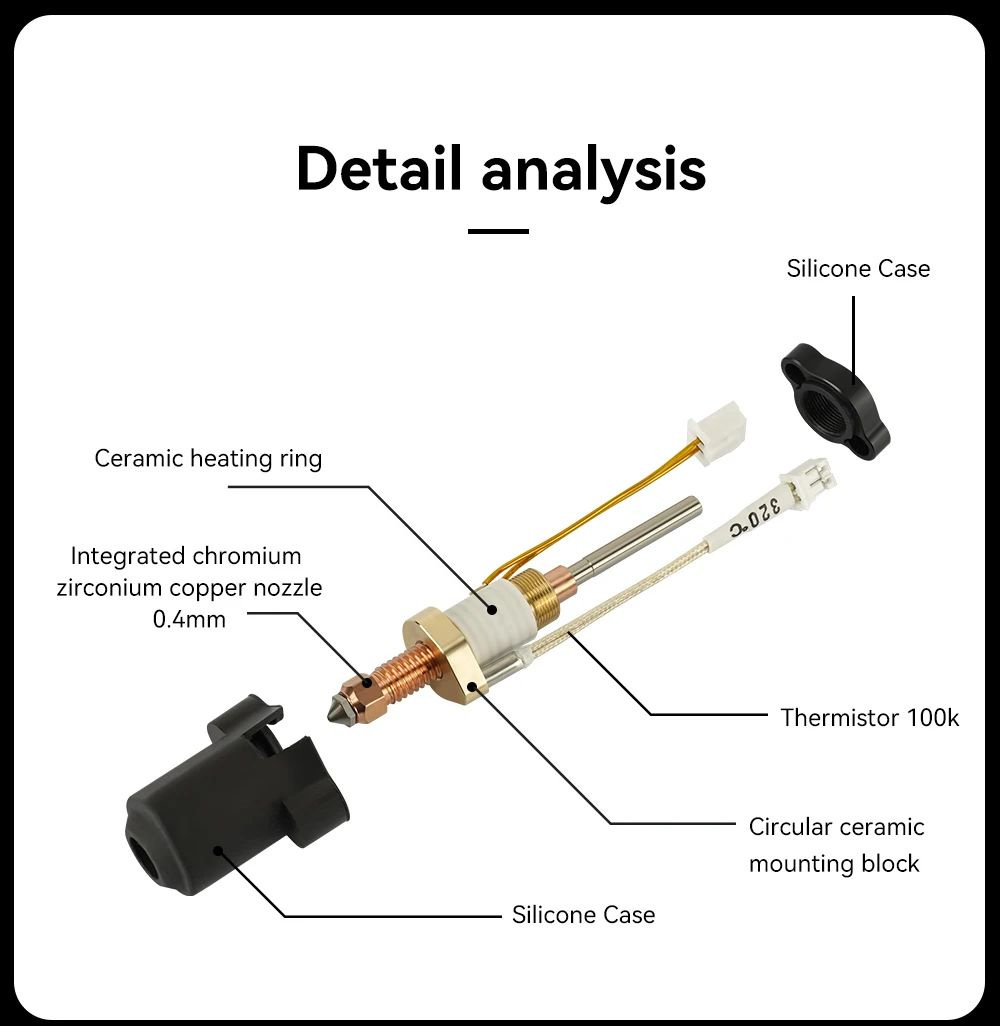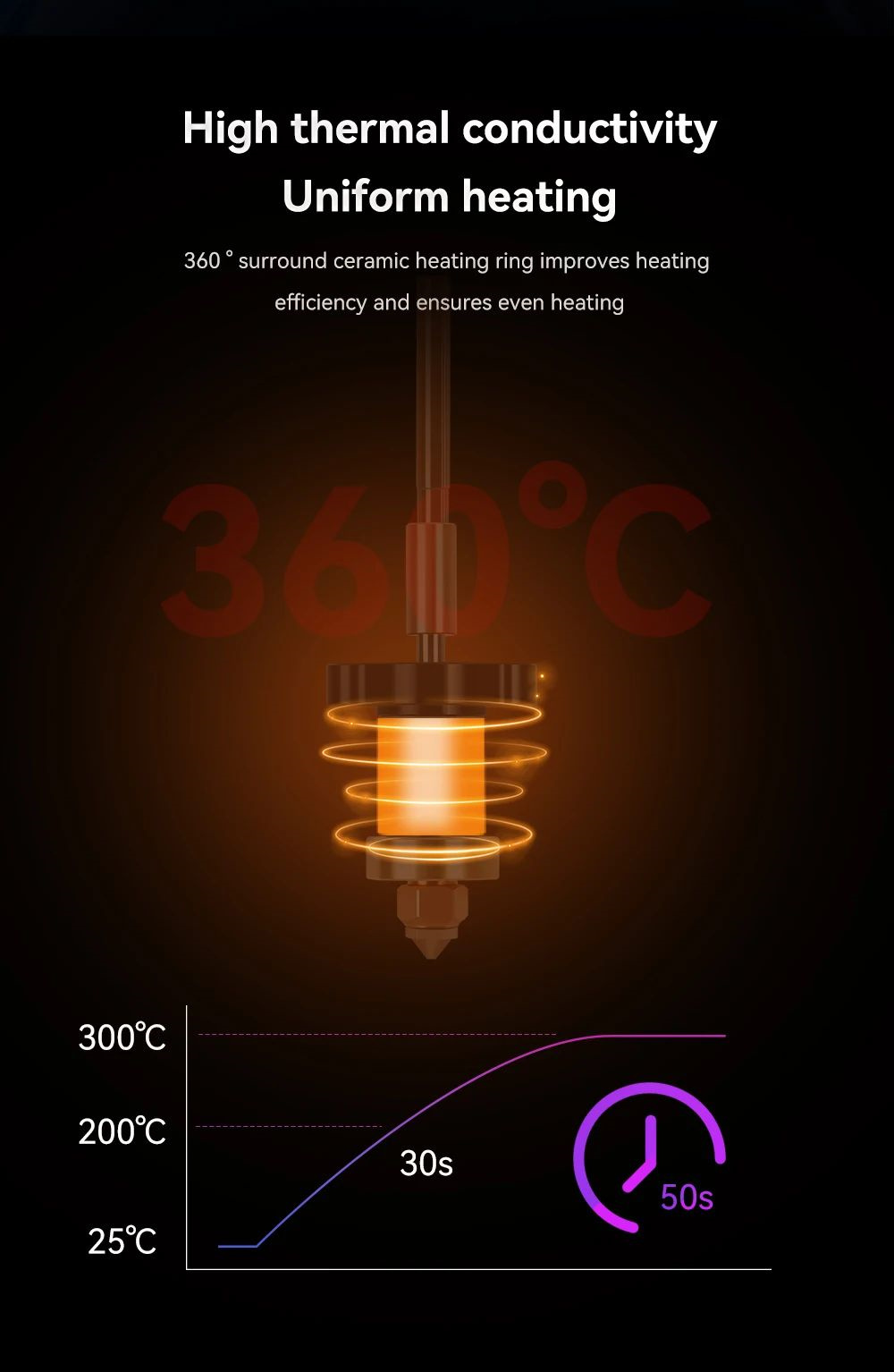 2. Chauffage uniforme à 360° : L’anneau chauffant en céramique permet une distribution uniforme de la chaleur pour améliorer la qualité d’impression.