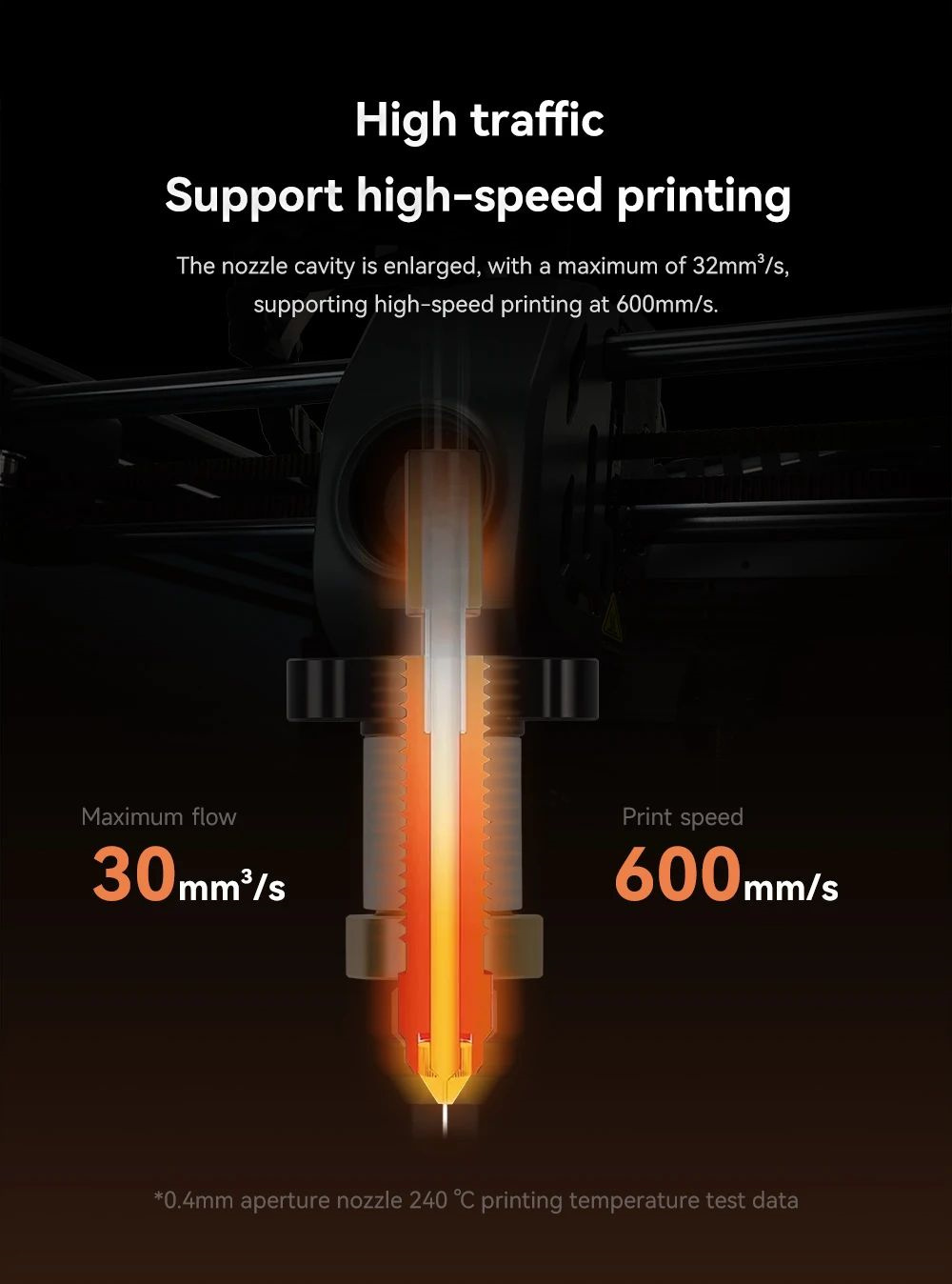 3. Débit élevé : La cavité de l’imbus agrandie prend en charge un débit maximum de 30 mm³/s pour une impression plus rapide.
