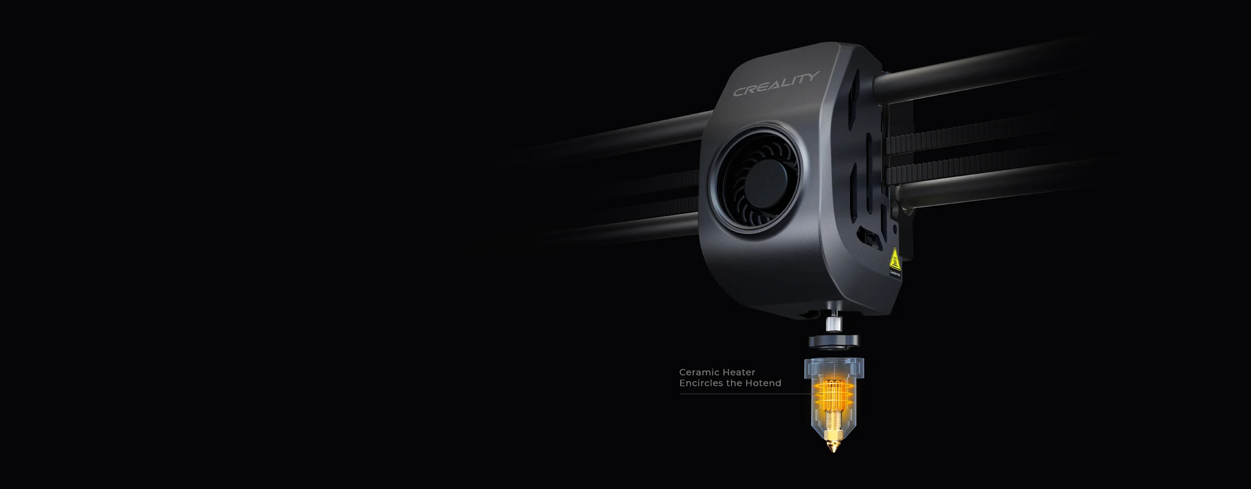 Nouveau corps de chauffe en céramique enveloppant l’ensemble de la tête d’impression. Il chauffe à 200℃ en 40s et fait fondre instantanément le filament.