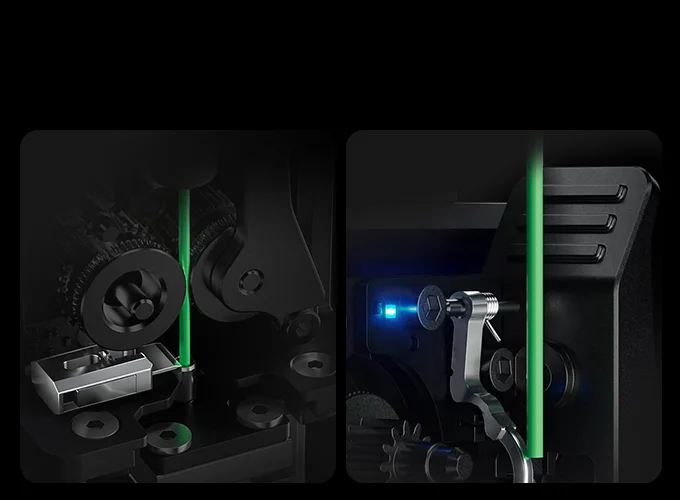 Engrenages en acier trempé pour une meilleure durabilité. Aucun problème pour faire face aux entrées et sorties répétées du filament.