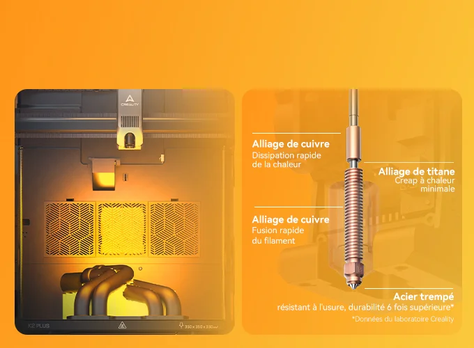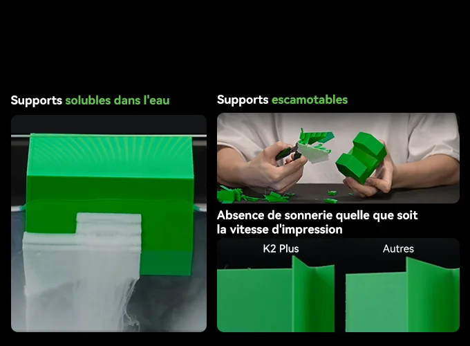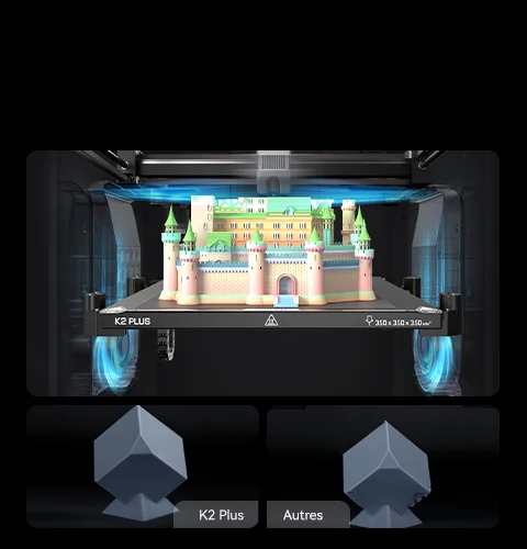Vous en avez assez du bruit strident ? Pas avec le K2 Plus. Grâce à l’adoption de moteurs pas à pas, de ventilateurs dynamiquement équilibrés et d’un boîtier bien ajusté, il n’est pas plus bruyant qu’une personne tapant sur un ordinateur portable, vraiment une machine créative à côté de laquelle vous pouvez travailler.