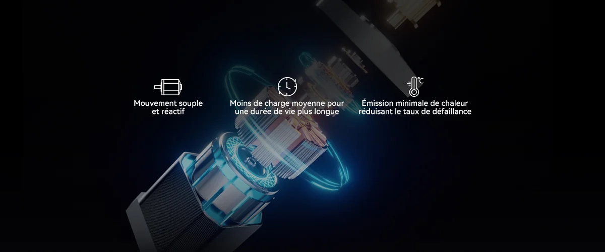 Pour une machine grand format, 600 mm/s est déjà très rapide, mais ce n’est pas tout. Propulsé par des moteurs pas à pas, il peut accélérer à une vitesse stupéfiante de 30000 mm/s²*. Le temps d’impression n’a jamais été aussi court.