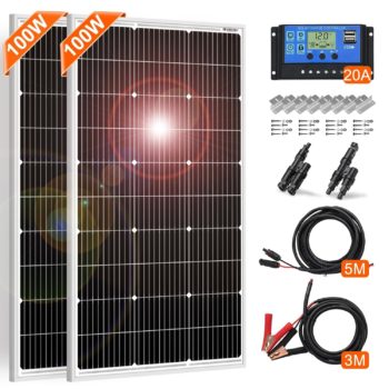 DOKIO 2PC Panneau Solaire 100W 18V Photovoltaïque Monocristallin 200W pour charger la Batterie 12V
