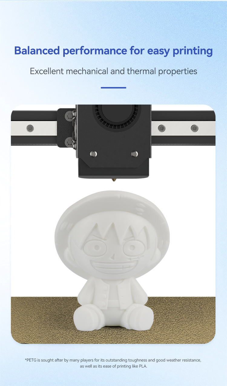 2. Propriétés mécaniques et thermiques exceptionnelles : Offre une résistance exceptionnelle avec une meilleure résistance aux intempéries que le PLA,garantissant des performances optimales pour des applications fonctionnelles ou extérieures.