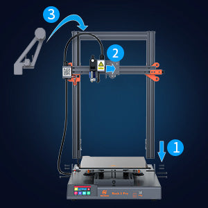 ![]() MINGDA Rock 3 Pro new user-friendly technology highlights: Babystep for more precision printing Rock 3 Pro new has an integrated baby step. Babystep is a function that allows you to adjust the distance between the nozzle and the construction plate when printing. If the nozzle is too far from the platform, the leaking layer cannot stick to the platform. If the nozzle is too close to the platform, the leaking layers are flattened. With the Baybystep function, you can touch the icon on the display to control it yourself, so you can effectively improve printing accuracy. | ![]() Belt tensioner on X and Y axis Equipped with a belt tension regulator on the X and Y axis. The drive belt can detach during prolonged use. If the belt loosens, this will affect the pressure accuracy. We are specially equipped with a belt tension regulator on the X and Y axis. If you find that the belt is loose, you can adjust this tensioner to a suitable tension, make sure the printer prints properly and print a beautiful model. | ![]() Make sure you have the cable connected correctly. For more information, please refer to the user manual and the video on Youtube. 1. Install the portal on the base. 2. Install the extruder. 3. Install the hanger (filament holder). Make sure you have the cable connected correctly. |