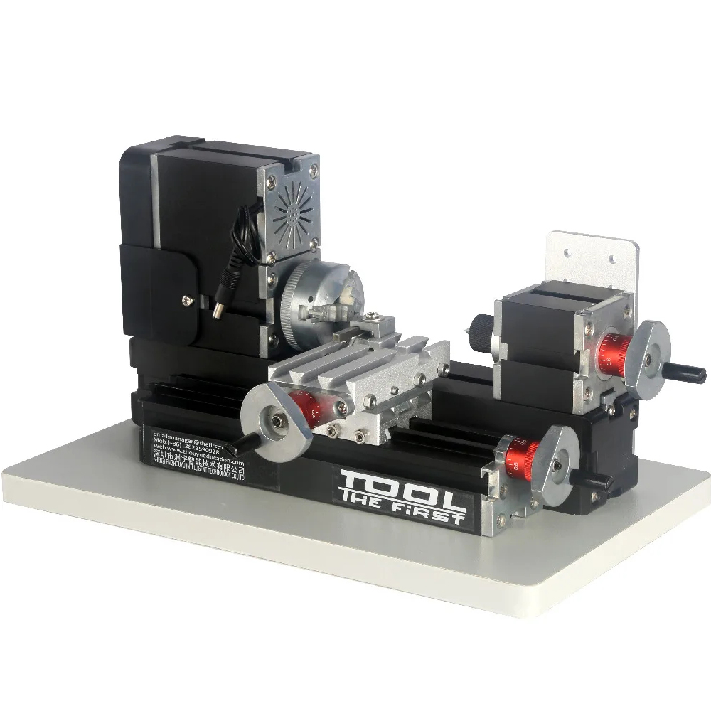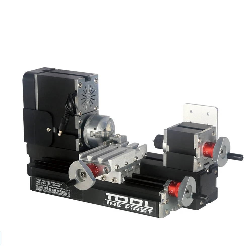 Spécifications:1. Vitesse du moteur: 12 000 tr / min 2. Tension d’entrée / courant / puissance: 12VDC / 5A / 60W 3. Diamètre maximum du matériau de travail: 20 mm 4. Longueur du matériau: 135 mm 5. Déplacement du curseur de l’axe Z: 32 mm Déplacement du curseur de l’axe X: 145 mm 6. Matériau de travail: plastique de lignine, métal mou (or, argent, cuivre, aluminium, etc.), acrylique, plastique, etc. 7. Avec une ligne d’échelle de 0,02 mm, la molette augmente la précision lors du traitement. 8. Puissance du moteur: 144W