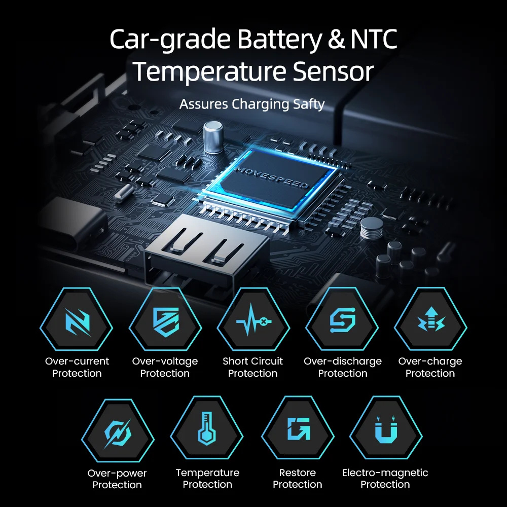 4. Fonctionnalités de sécurité avancées : capteur de température NTC intégré et système de protection à 8 couches comprenant des protections contre les surintensités, les surtensions et les courts-circuits.