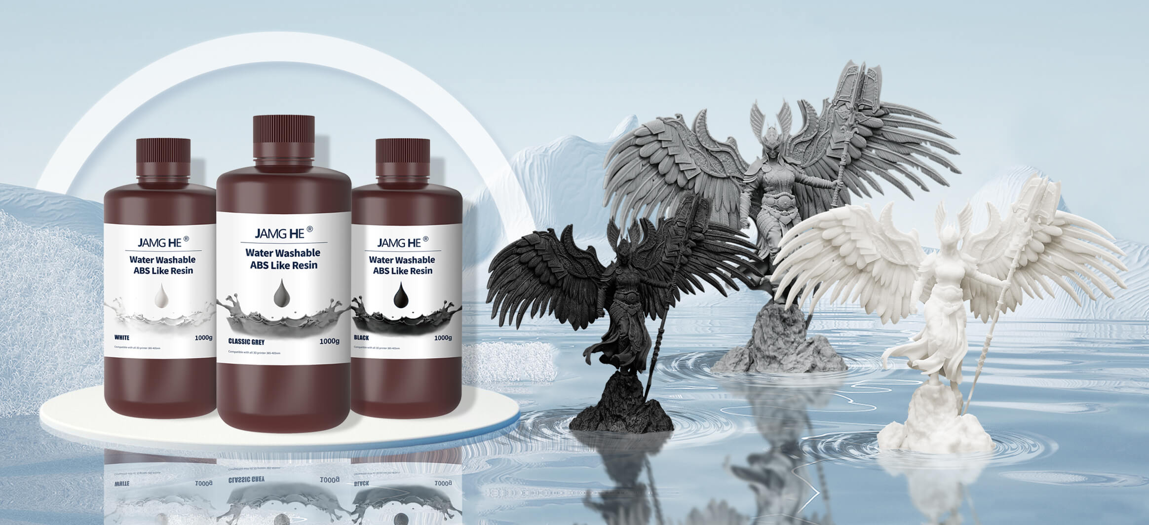 JAMG HE ABS like resin + water washable resin ensures a much better printing experience for your and your customers.